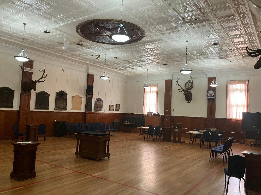 The Elks Lodge Room is used for Elks meetings, but can be used for other larger functions, such as wedding receptions, large parties, etc. This room will hold approximately 200 people.