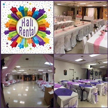 Our Hall is available to rent for parties, wedding, etc. for a fee. Please contact the Lodge for more details.