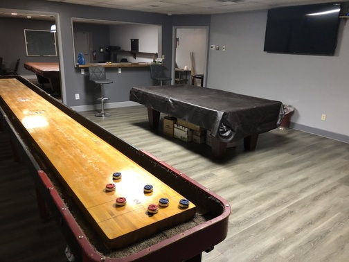 (1) Snooker table, (1) 8 Ball table (1) Shuffle Board Table