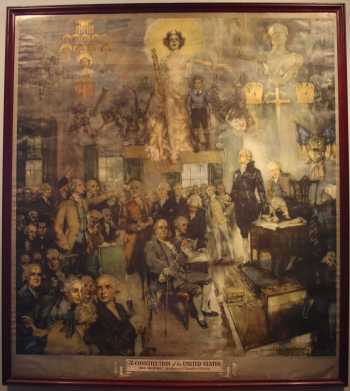 Many framed prints hang around the Bar area, including this Lithograph from the Sesquicential celebration of the signing of the Constitutin. It is called "The signing" and was painted by Howard Chandler Christy and was issued in 1937.