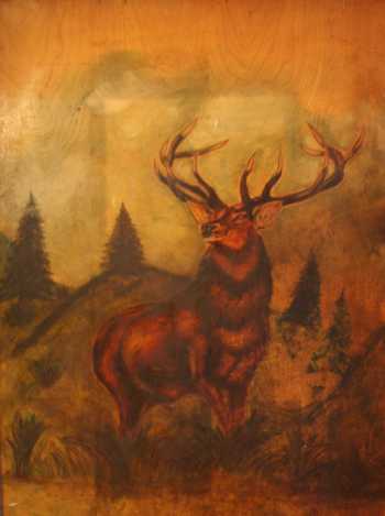 A frosted mirror depicting Elk.