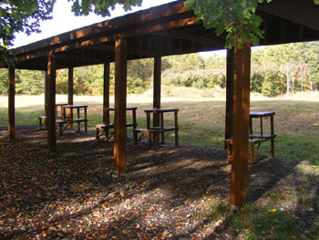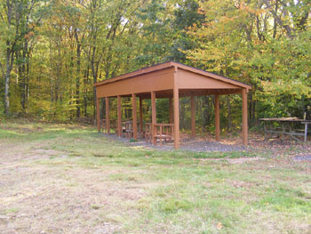 Our Pavilion has a small kitchen and restrooms, as well as two horseshoe pits and a volleyball/badminton court.