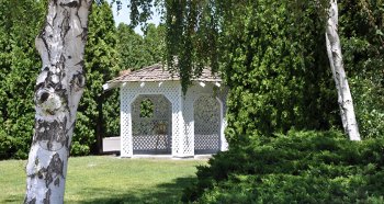 We welcome outdoor functions on our patio and in the gazebo. Weddings are common in our gazebo set in a lush sylvan area of the Lodge property.