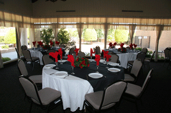 Each ballroom has its own unique décor with beamed ceilings and window views. Our outdoor patios, south lawn, and pool areas provide the perfect setting for wedding ceremonies, garden receptions, barbecues, and picnics.