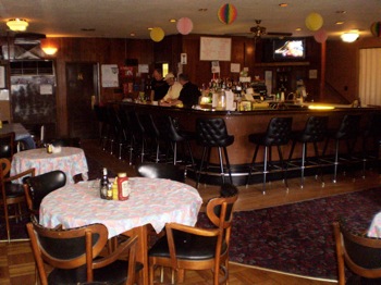A quaint horseshoe bar nestled next to a fireplace is where the Freeport Elks like to hang out!